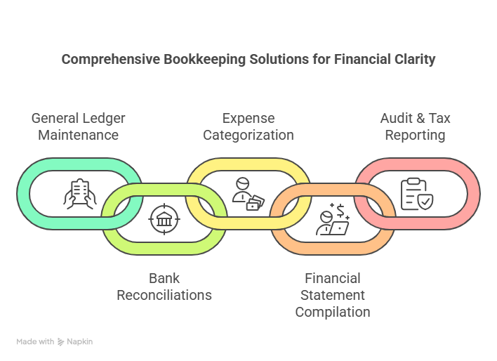 Your general ledger is the heartbeat of your finances. We meticulously record and categorize every transaction, ensuring your ledger is accurate, up-to-date, and organized. Whether it’s tracking revenue, expenses, assets, or liabilities,